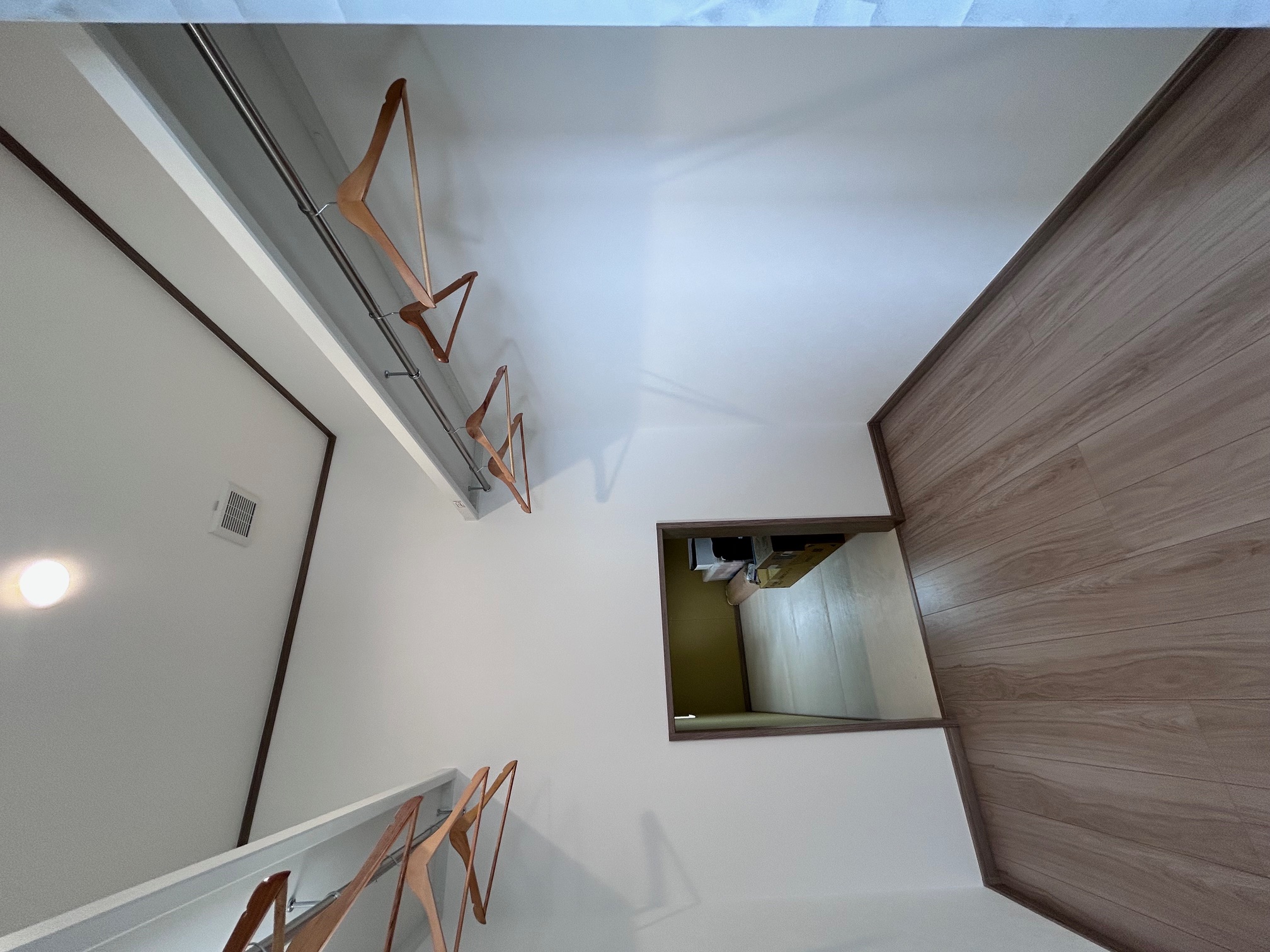 通常、小屋裏収納は2階の廊下からハシゴを掛けていわゆる3階部分に昇っていく、というケースが多いのですが、間取りによってはこうして2階床から地続きで小屋裏収納へと行き来することも可能になります(*^^)