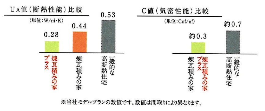 UA値は断熱性能を表し、C値は住宅の隙間の量を表す気密性能を数値化したものです。