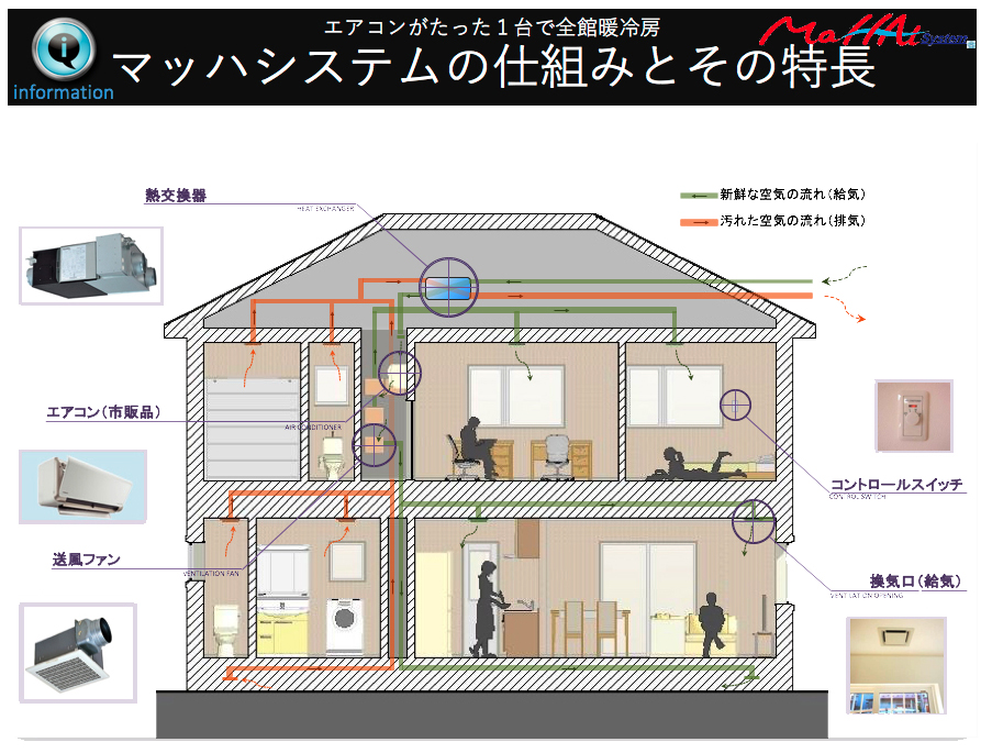MaHAt(マッハ)システムシステムは、市販のエアコン1台(※)で