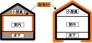 外張断熱では生活空間に全く影響なく可能 |