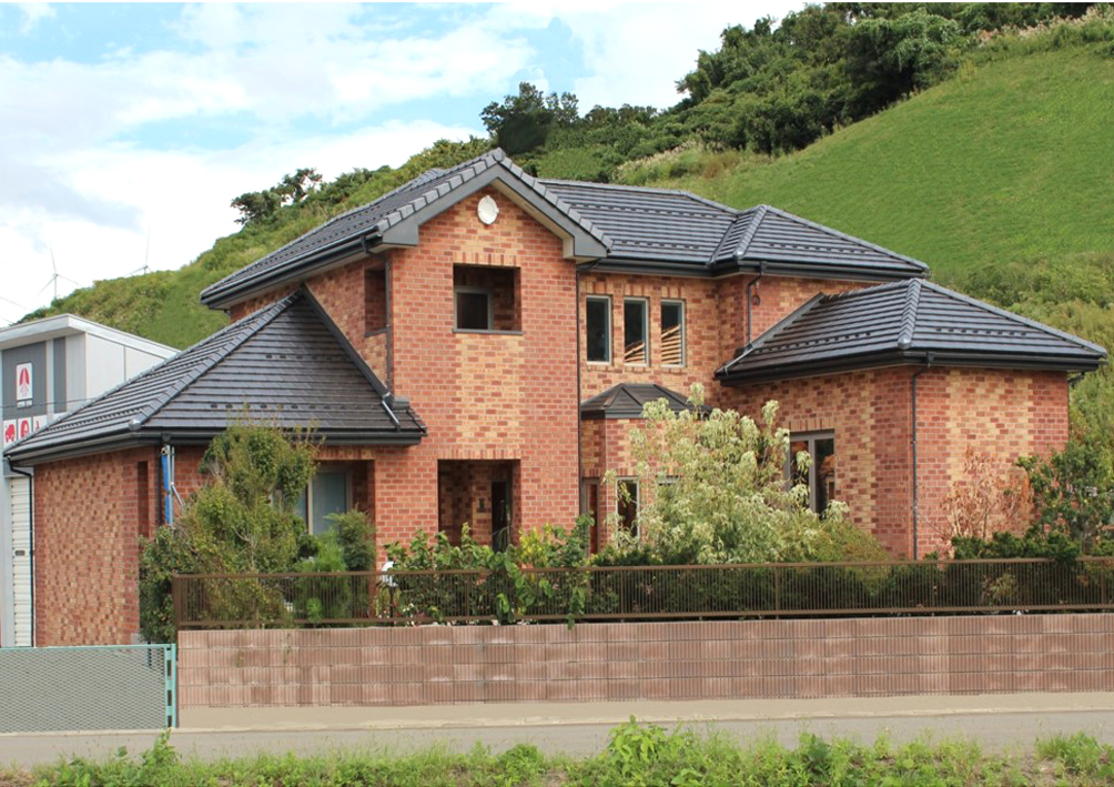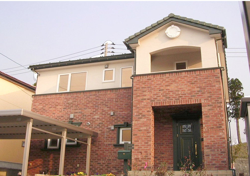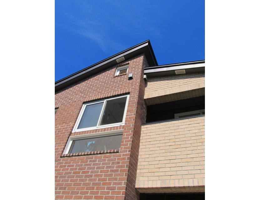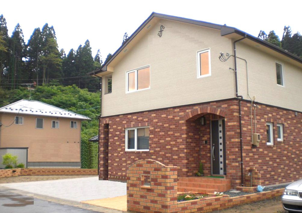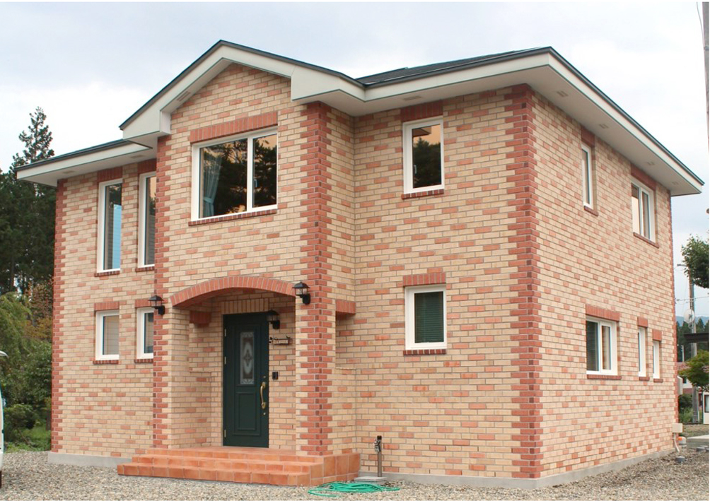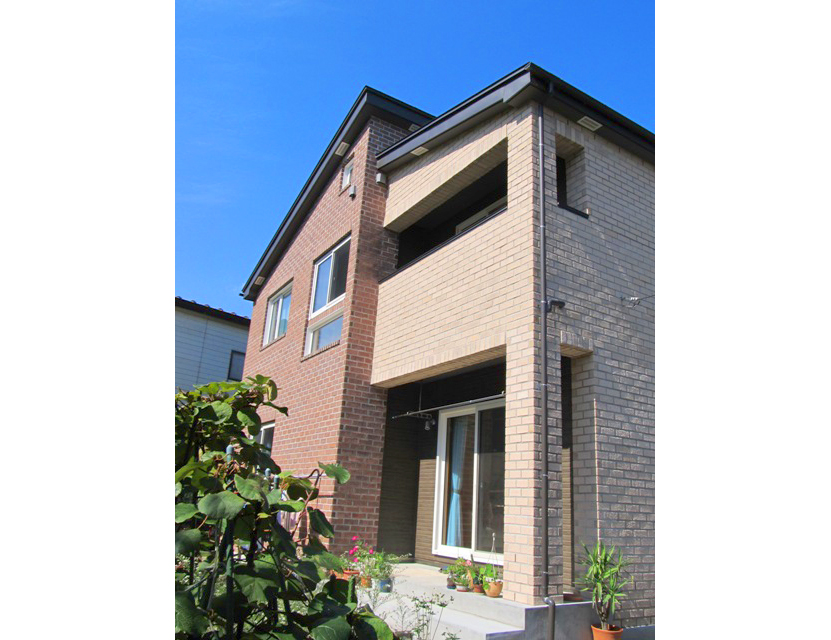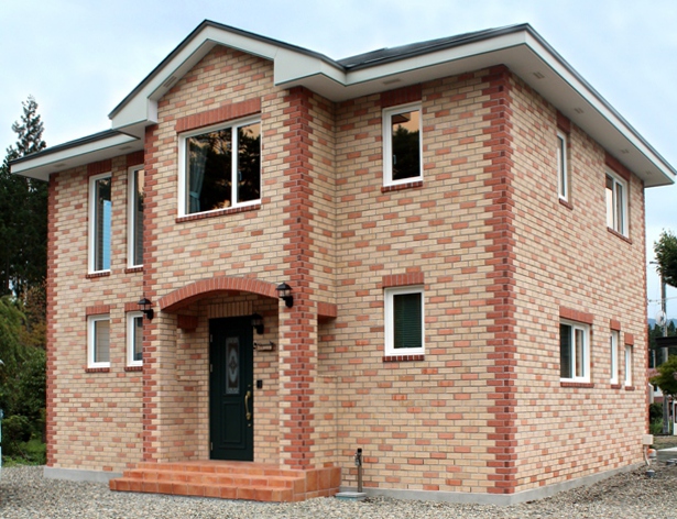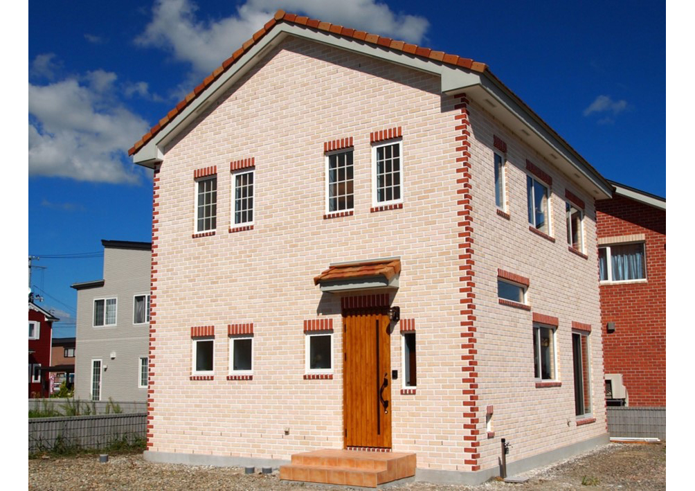 新色のブラウン色のレンガと、アイボリー色のレンガを組み合わせました。