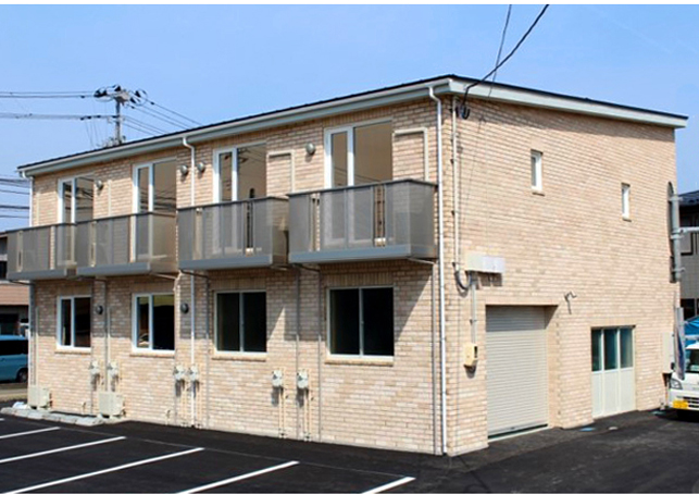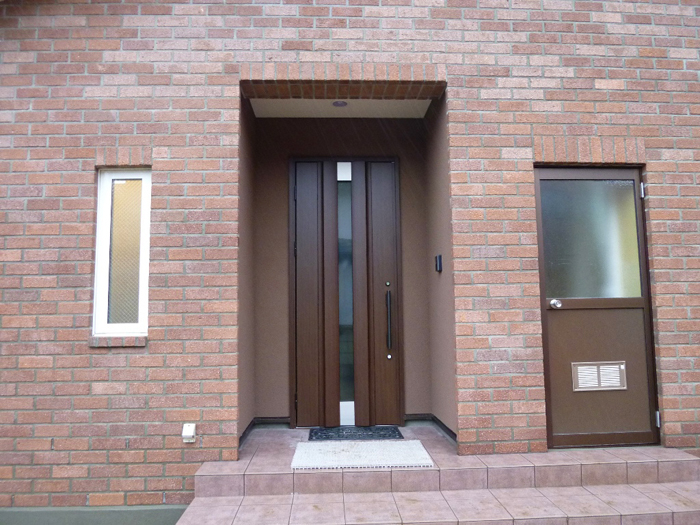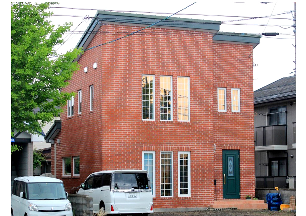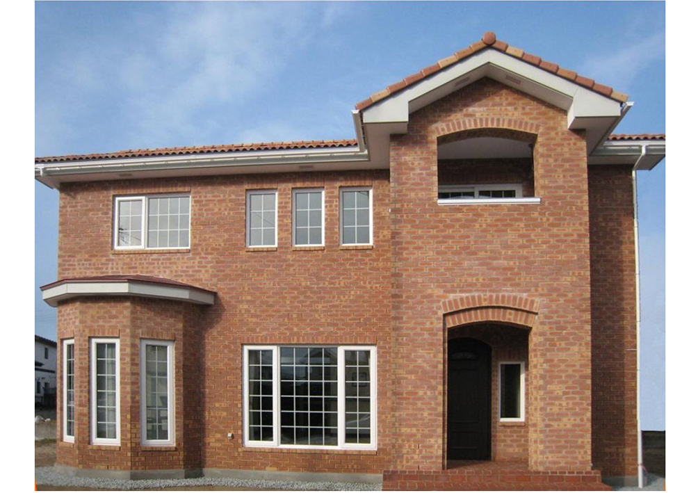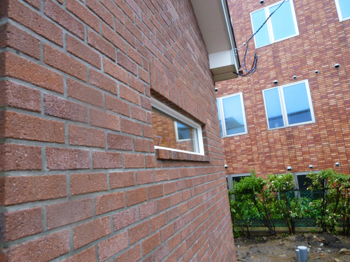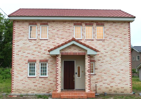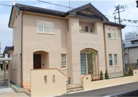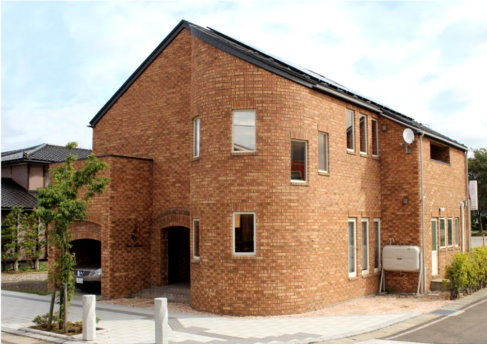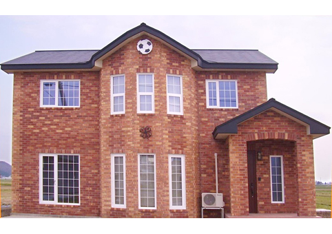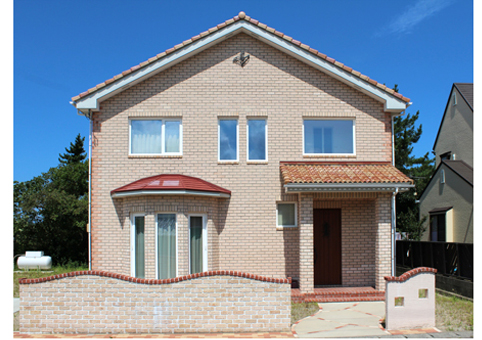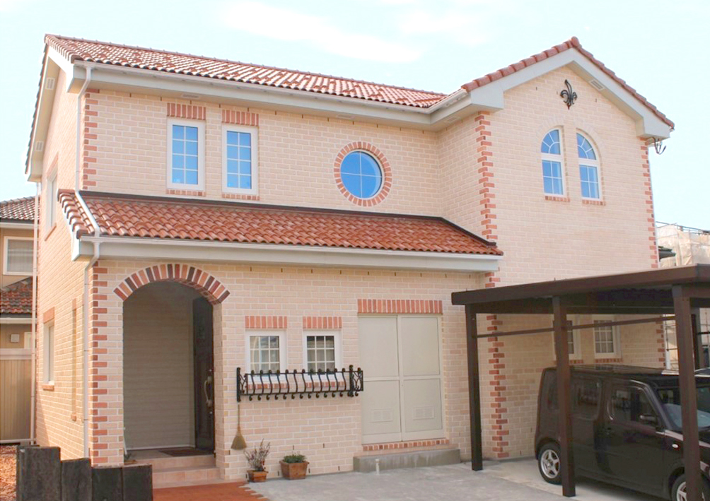 新色のブラウン色のレンガと、アイボリー色のレンガを組み合わせました。