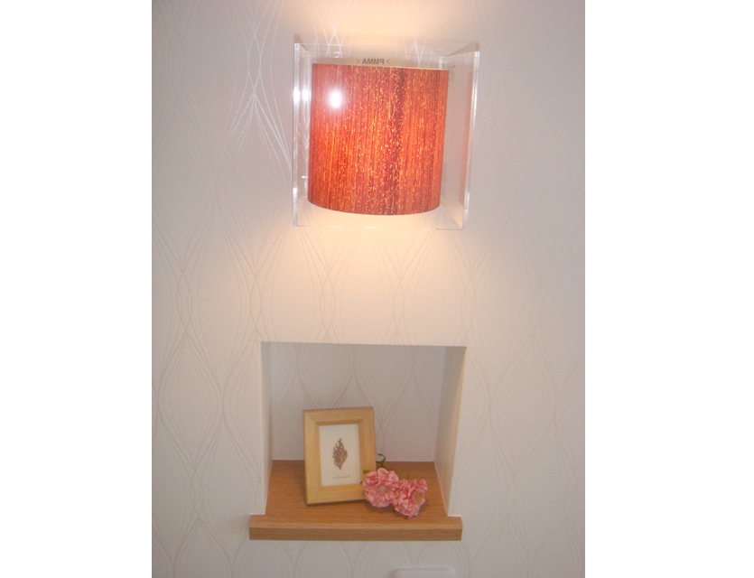 壁にはムース×キャラメル、コーナーとモールにはアクセントのロゼを組合せました。