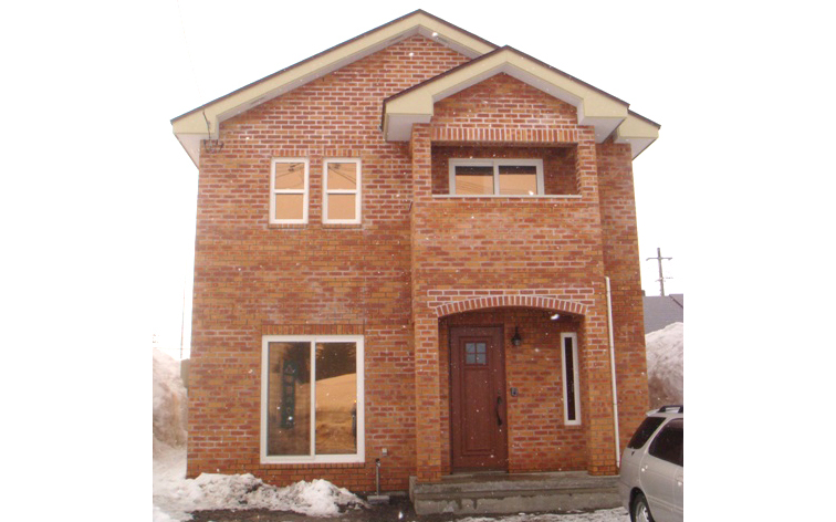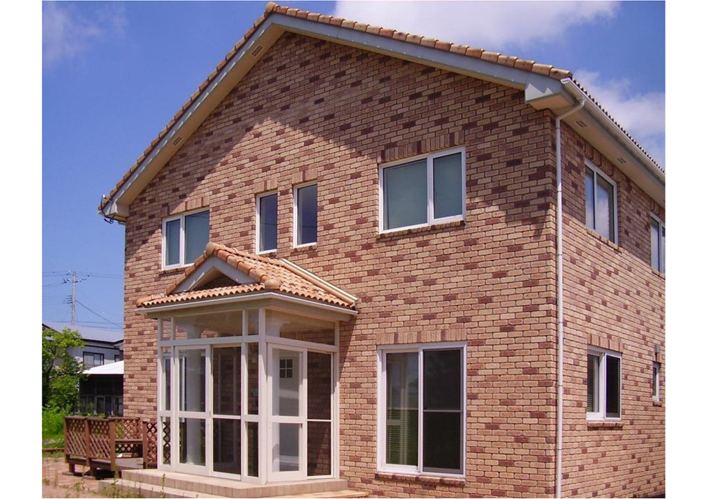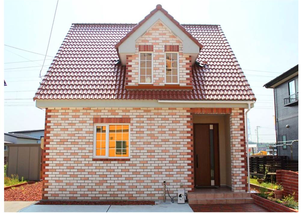 ムース×ロゼ×キャラメル 3色使いのレンガ積みの家