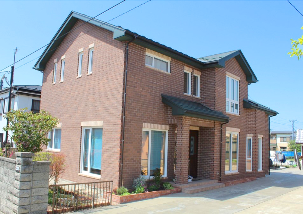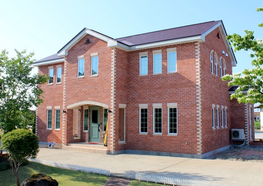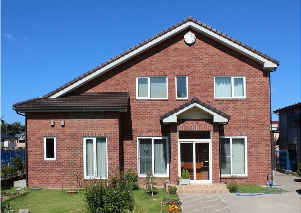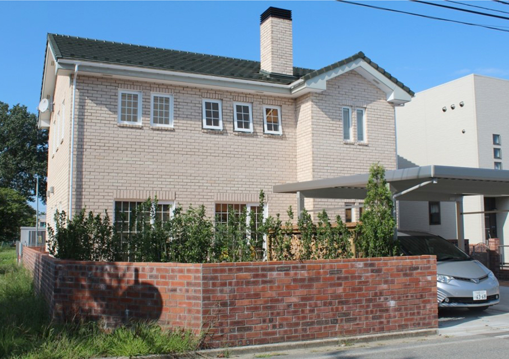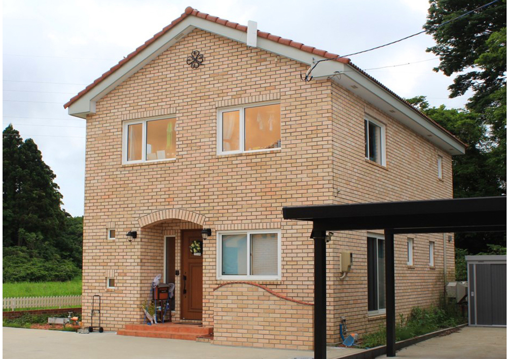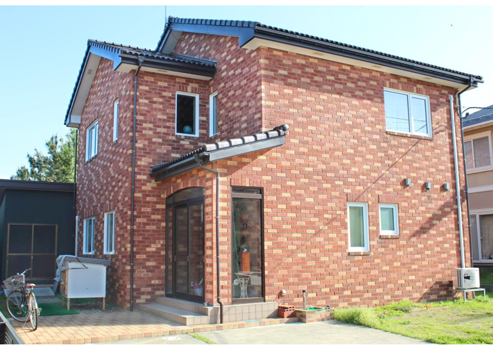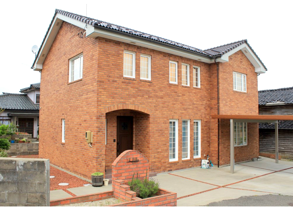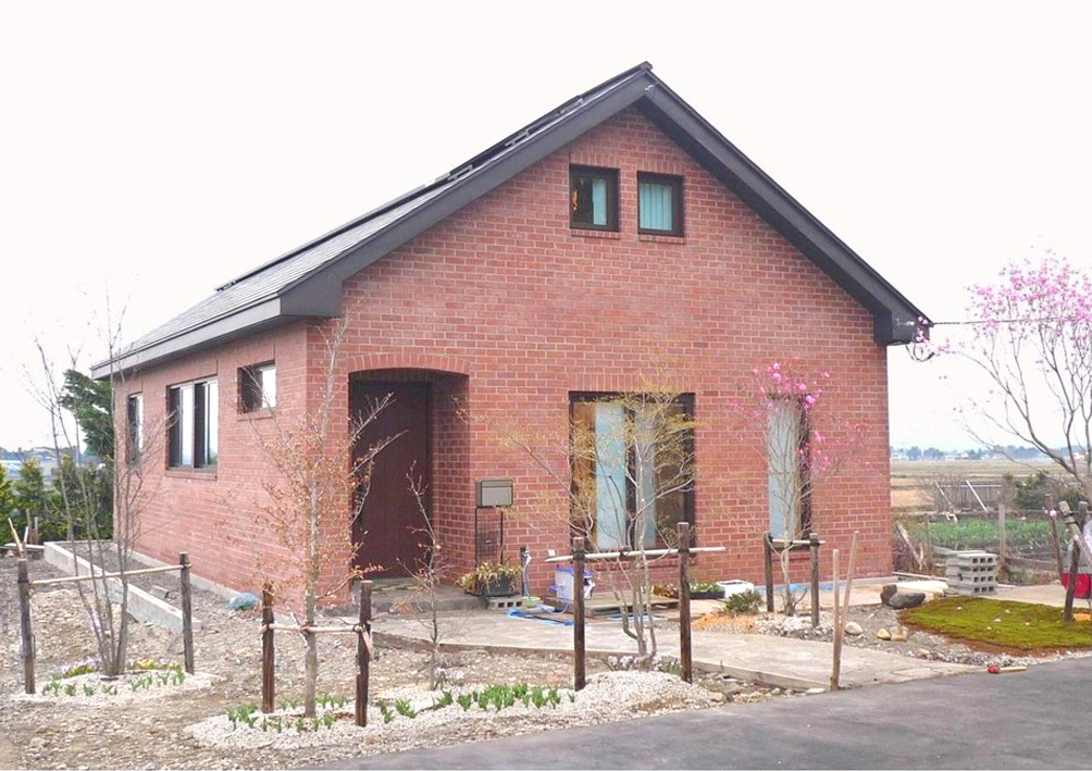落ち着きのあるブラウンのレンガを使用した平屋建のお家です。