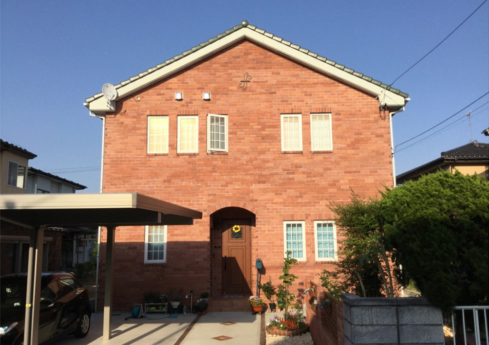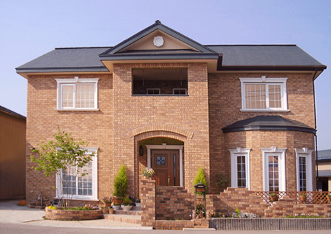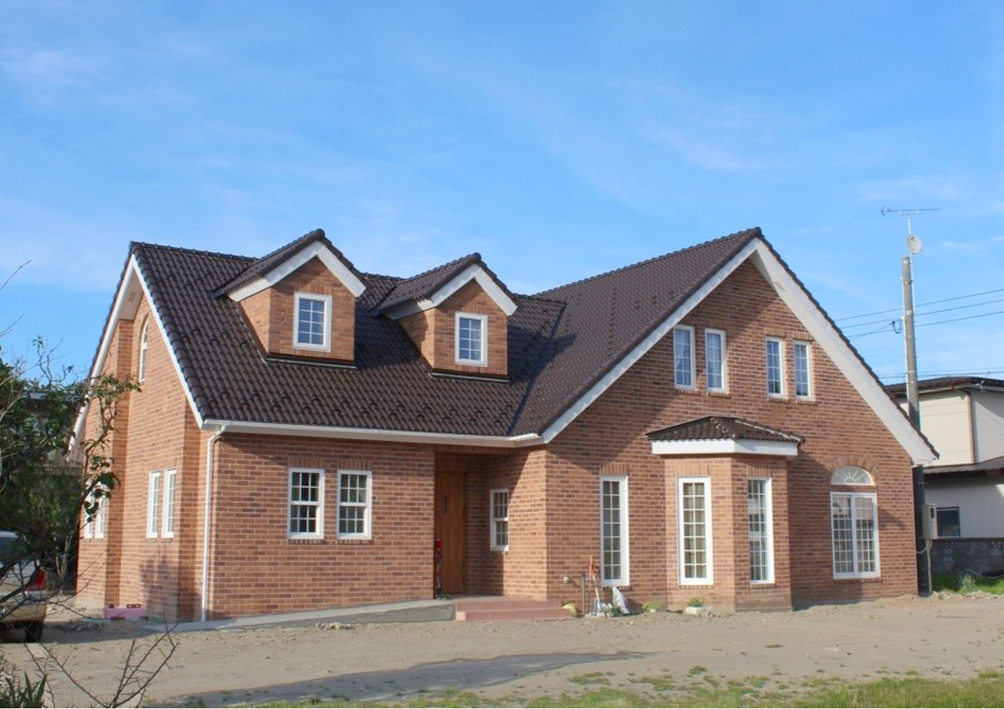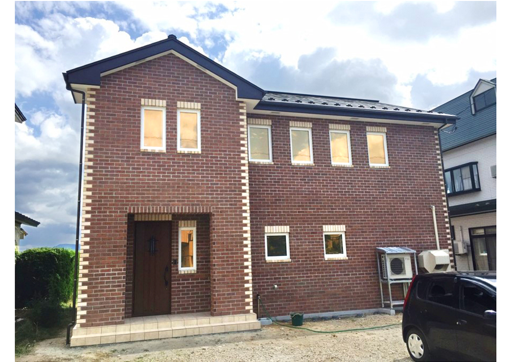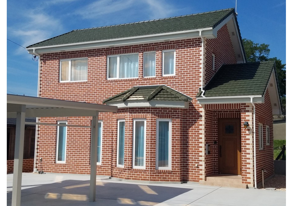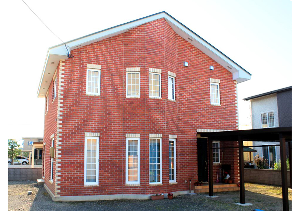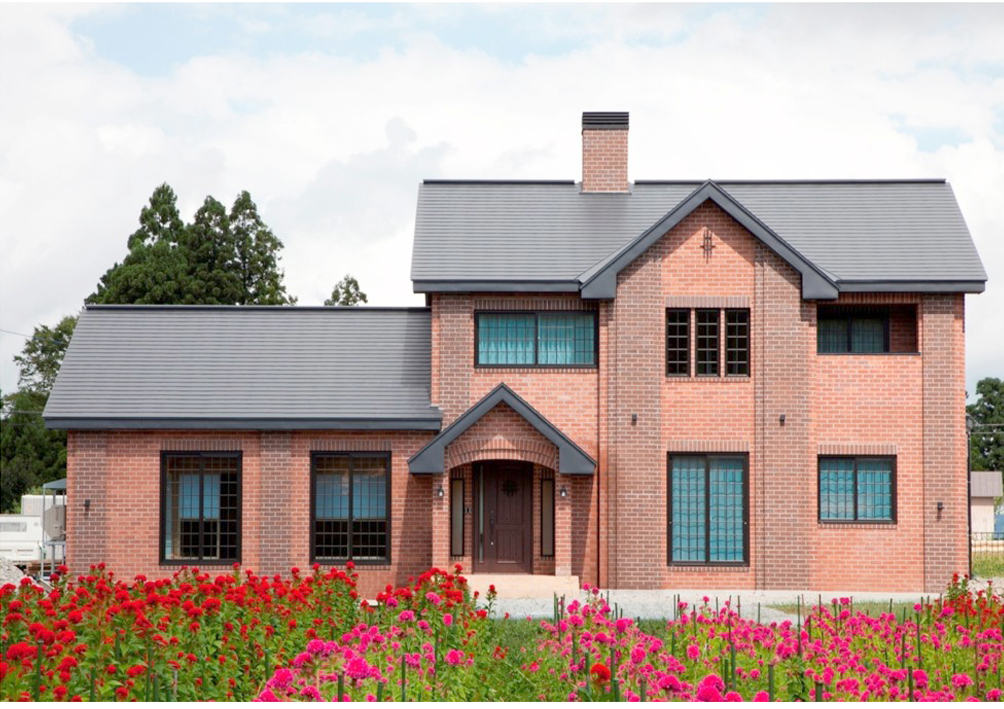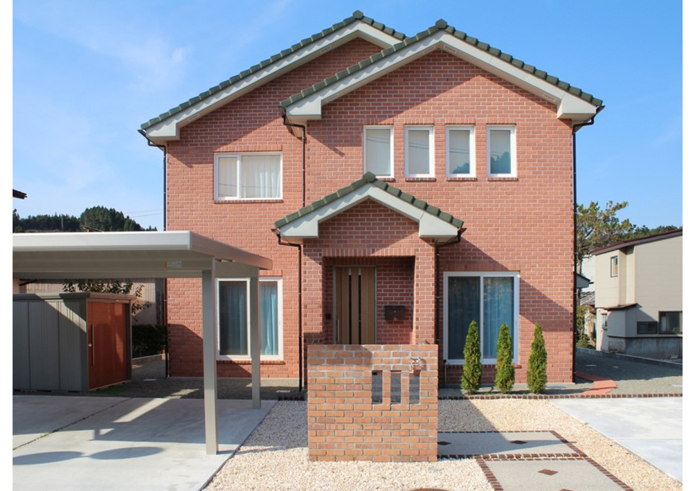 落ち着きのあるブラウンのレンガを使用した平屋建のお家です。