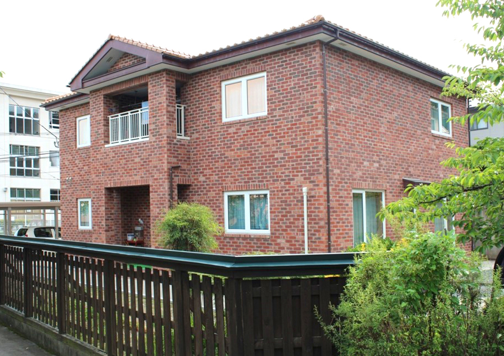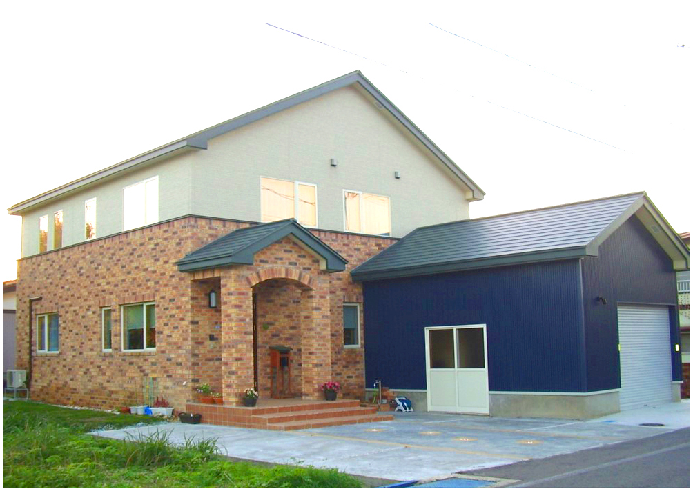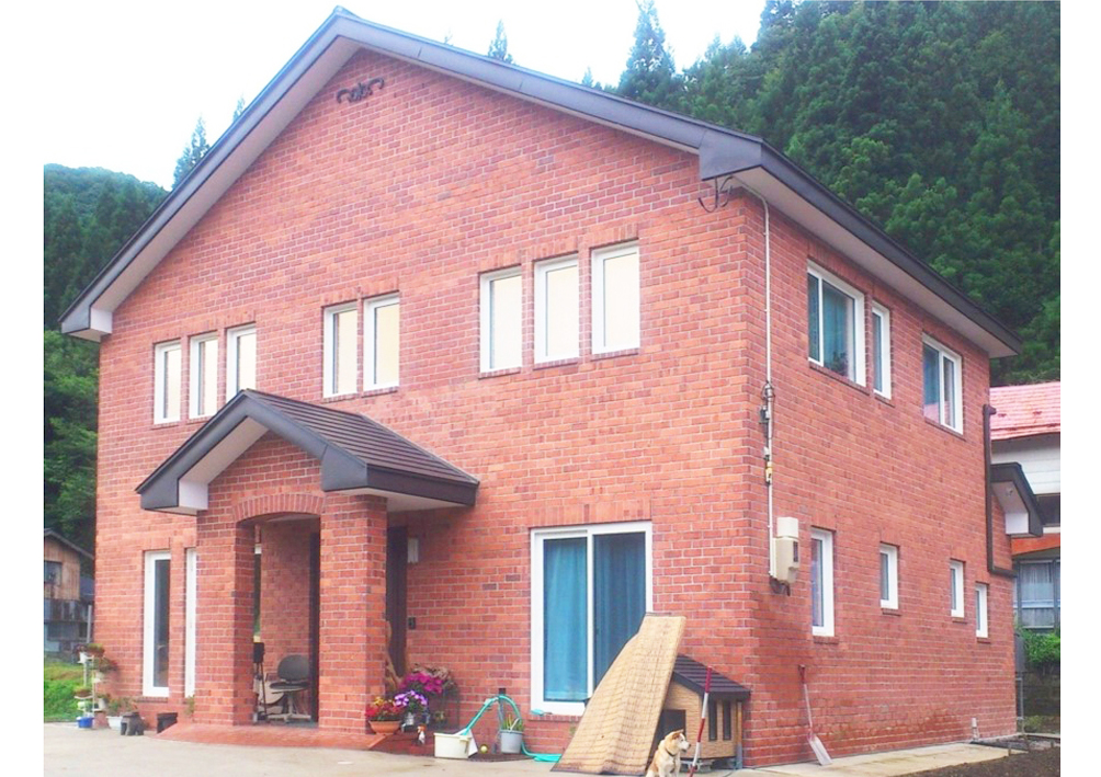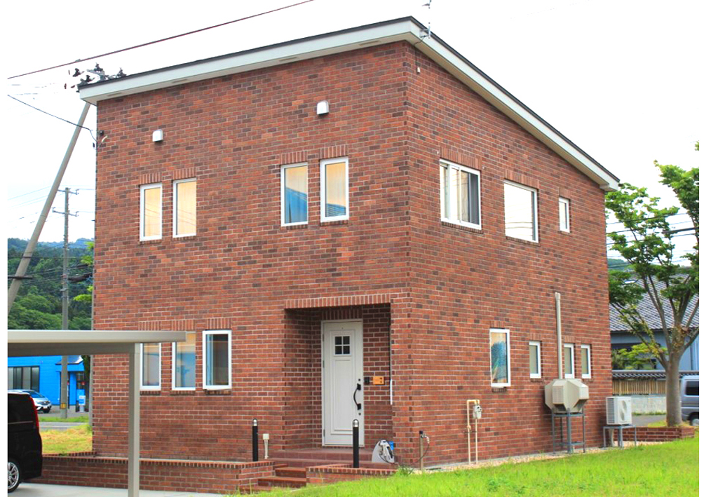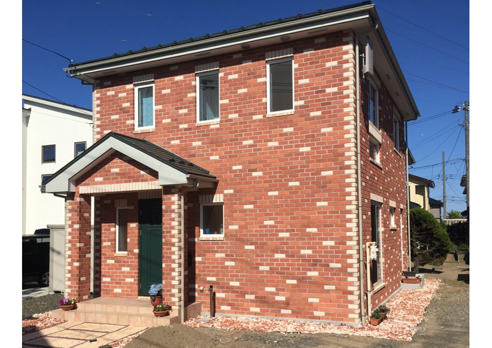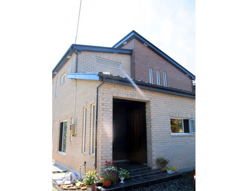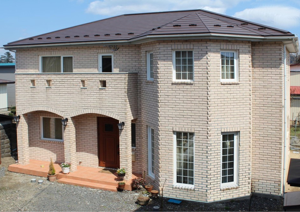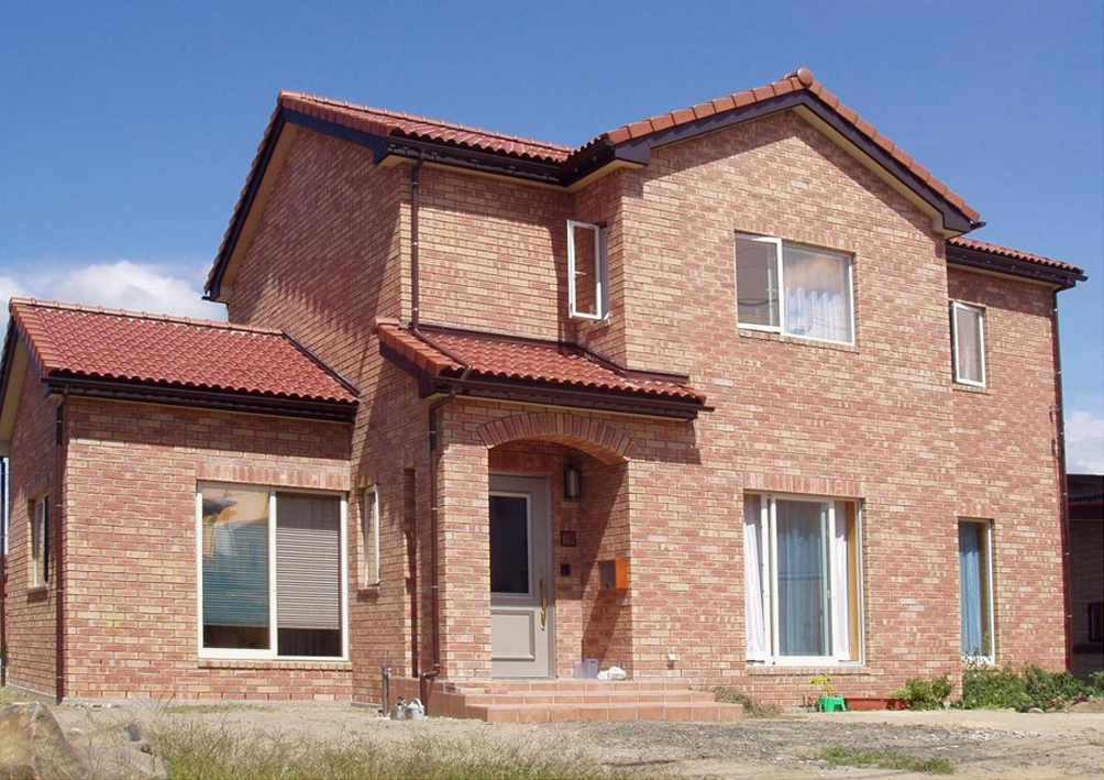 落ち着きのあるブラウンのレンガを使用した平屋建のお家です。