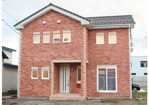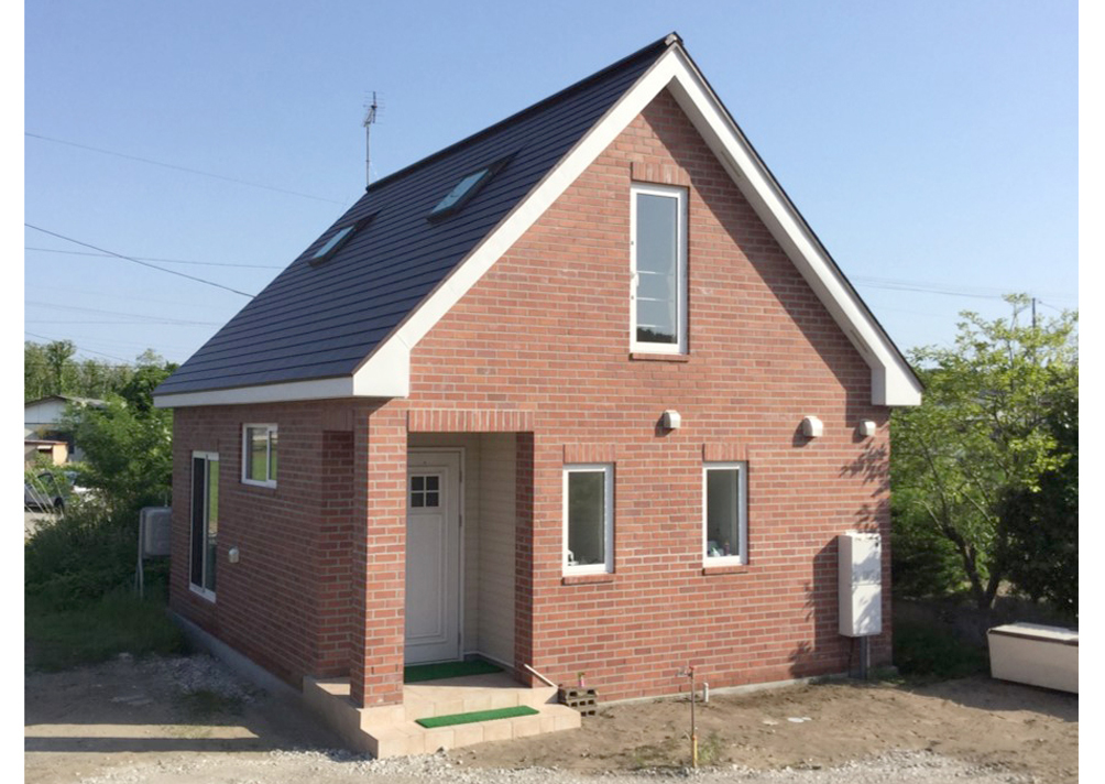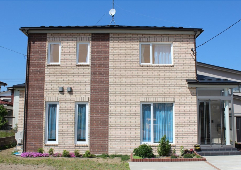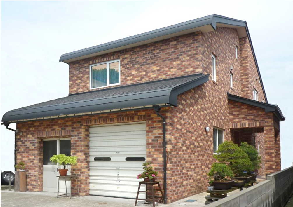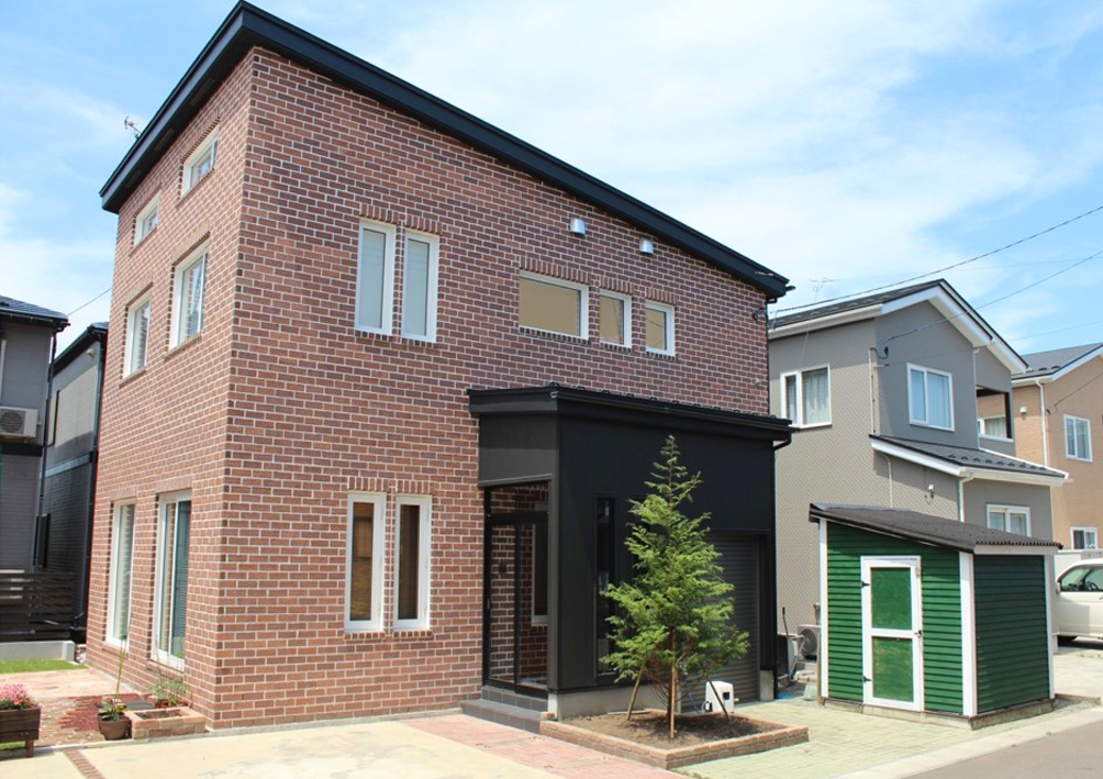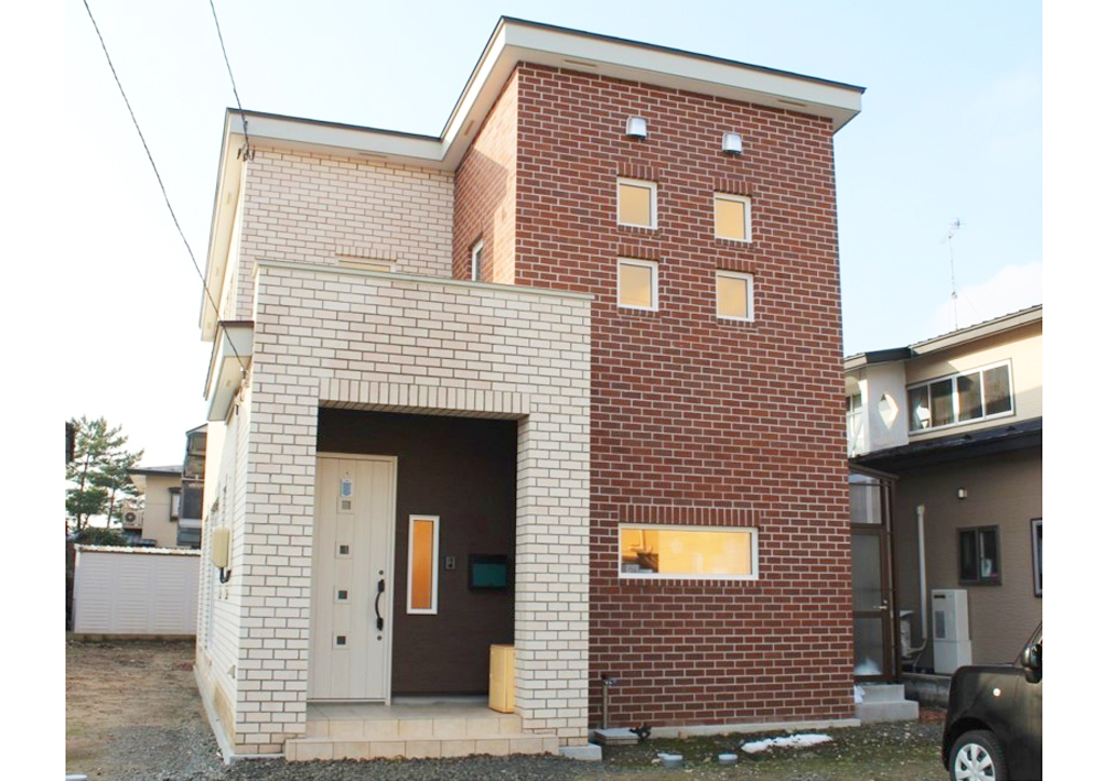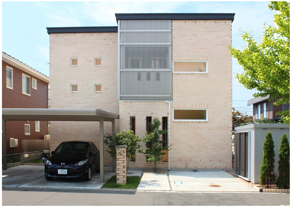 ツートンカラーでモダンな雰囲気のレンガ積みの家です。